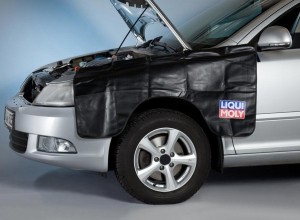 Захисна накидка з магнітами на крило автомобіля для попередження подряпин на ЛФП при роботі з двигуном в підкапотному просторі. Захисна накидка зі штучної шкіри з боку торкання майстра і з нейлонової тканини з боку торкання до крила. Прошарок м'який з тонкого паралону дозволяє зменшити силу випадкового удару. Елементом фіксації до кузова є вшиті магніти. Захисна накидка з магнітами призначена для роботи з металевими кузовами. Доступно нанесення Вашого логотипу (ціна по запиту).